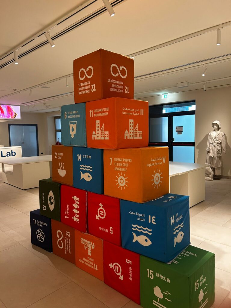 È da questa suggestione che prende forma il nostro itinerario al FAO MuNe, il nuovo Museo e Rete per l’Alimentazione e l’Agricoltura. Ospitato nella sede centrale romana, a pochi passi dal Circo Massimo e dal Colosseo, questo spazio si configura come un crocevia di scambio culturale e innovazione. Un luogo peculiare, in cui le categorie spazio- temporali sembrano sospendersi in un’atmosfera dall’estetica tecnologica, dove digitalizzazione e immersività si fanno strumenti per una narrazione condivisa e plurale.