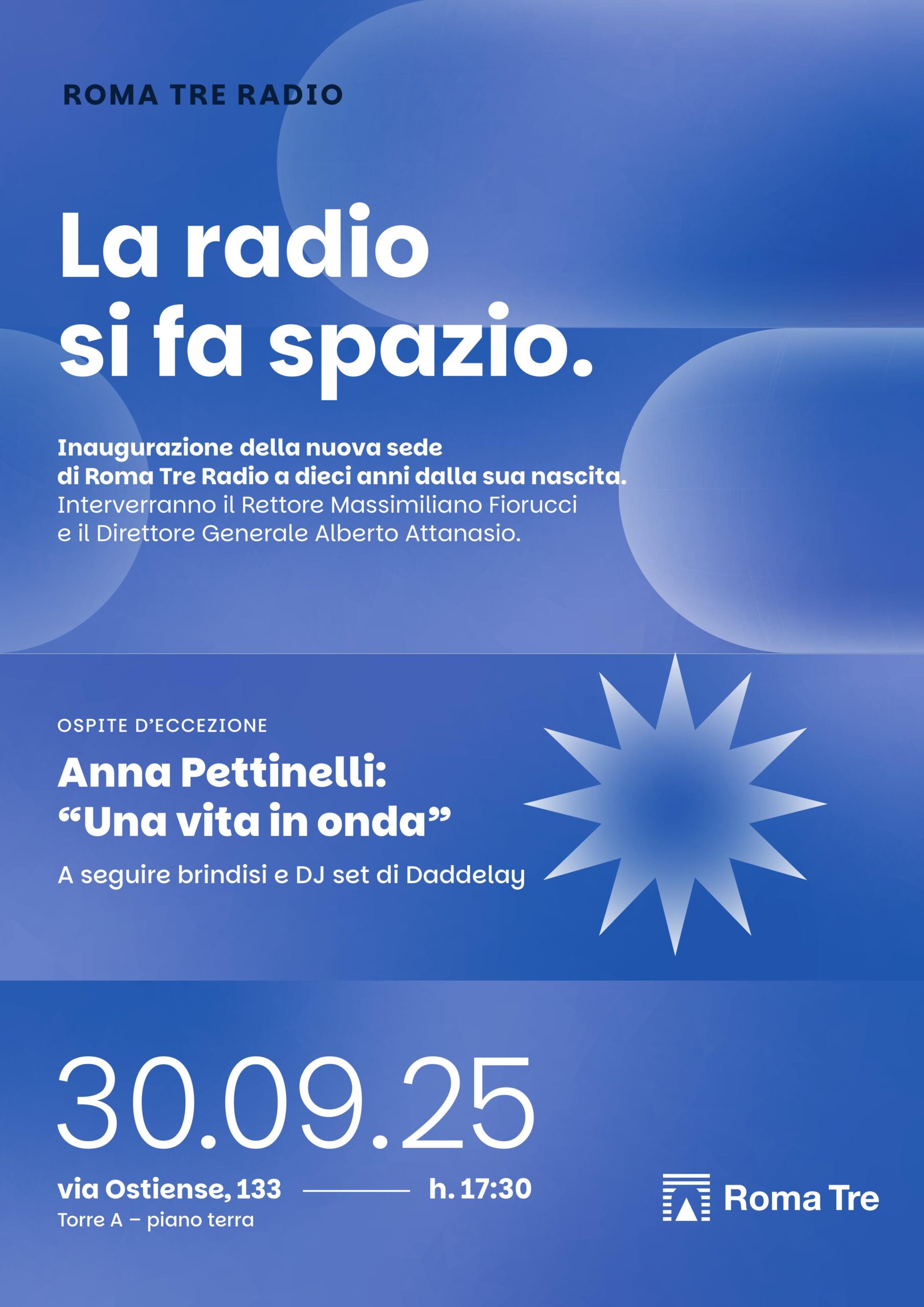 Martedì 30 settembre 2025, dalle 17:30, presso il Rettorato (via Ostiense, 133) si terrà l’inaugurazione della nuova sede di Roma Tre Radio a dieci anni dalla sua nascita